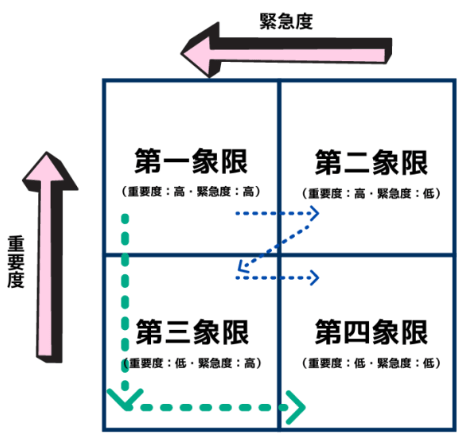 ②取組み優先順位が明確:紙に書き出す・見える化する(出来れば緊急☓重要の4象限で)