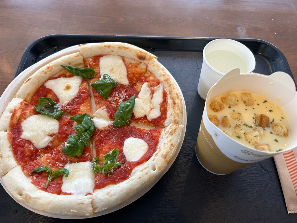 本日はカツカレーが無くマルゲリータとコーンスープでした。