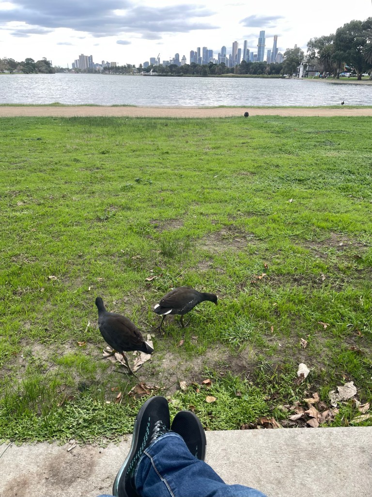 妙に指の長い鳥が人懐っこく寄ってくる。アルバートパークレイク。