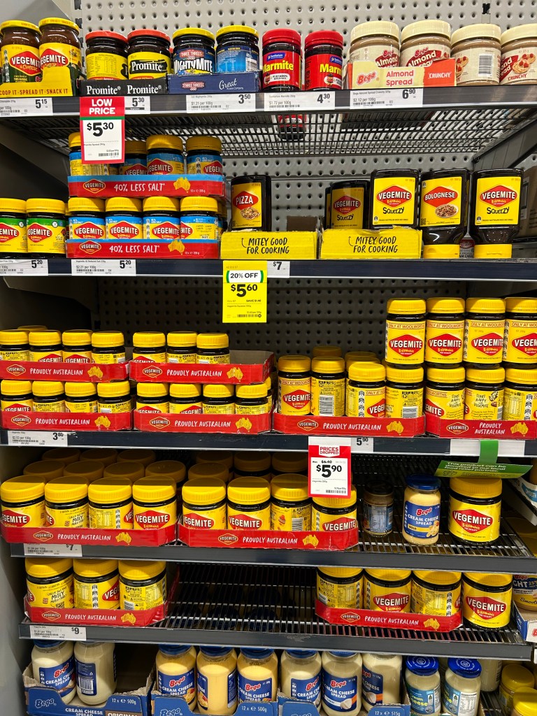 オーストラリア人でベジマイト好きに出会った事がないが、スーパーでは一角を占める。