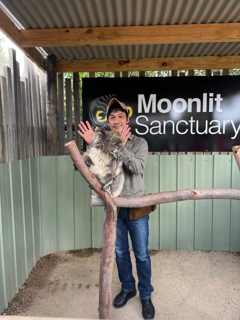 余談ですが、そのドライブ中に助手席から道に面したユーカリの木の又で寝ていた野生のコアラを発見し、ドライバーに伝えたところ、急ブレーキでストップしドライバーは車から降りて確かめて本当だ!と感心されました。彼らオーストラリア人も当時から野生のコアラを見ることはほとんど無かったらしく珍しい光景だったようです。私の誇らしいまぐれ発見でした。
